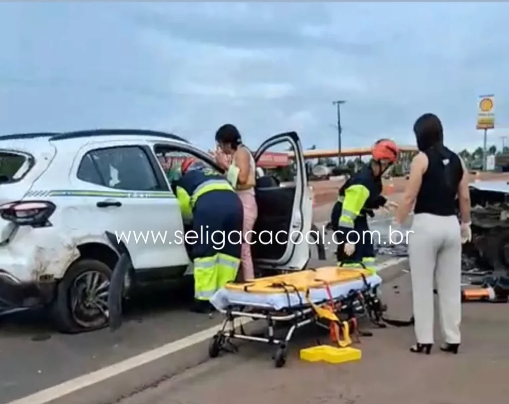 Equipes de resgate foram acionadas e prestaram atendimento às vítimas ainda no local. Imagens mostram um veículo com avarias e a presença do Corpo de Bombeiros realizando os primeiros socorros.