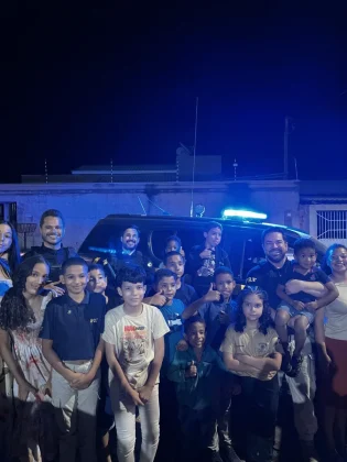 O clima de alegria contagiou adultos e crianças. Os policiais cantaram “Parabéns”, jantaram com a família, tiraram fotos com os convidados e presentearam o aniversariante com itens simbólicos da corporação, como uma garrafinha e um broche, que ele guardou com carinho.